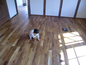 1階の床はチークという無垢のフローリングですので、お子様も気持ちよさそうです。