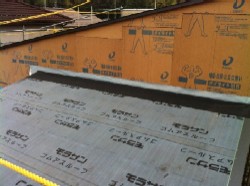 外部は耐力壁ともなる外壁の下地を張り終え、屋根仕舞いも防水処理まで終えています。