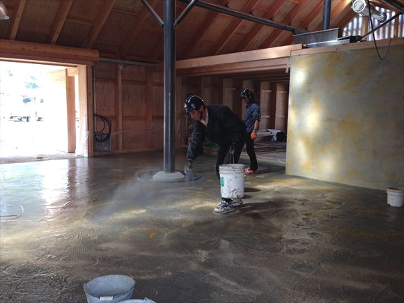 床の左官などは大面積で、水がひくまでにコテで押さえるという難しい作業でしたが、スタッフの方も楽しんで頂けたようでよかったです。