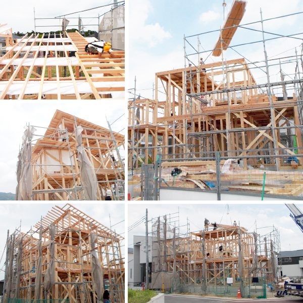 5月中旬に着工しました菩提寺の家の建方工事が先日行われました。