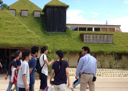 この土は蒲生の土で、草屋根などの土壁をはじめ、ラコリーナの至る所にも使われています。