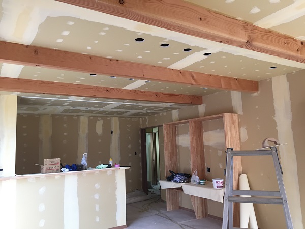 クロスを貼る前にセッコウボードの継ぎ目をパテ処理します。